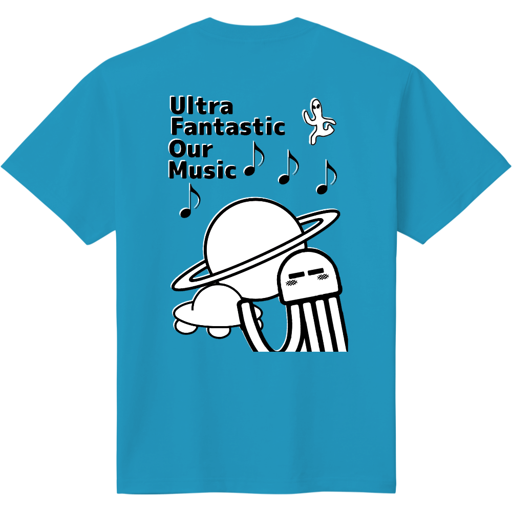 地球を征服しに来た宇宙人が、地球の人々の優しさに触れ、征服を諦めて立ち去り、クラゲもどきの待つ母星へと帰還します。 その後、遥か宇宙の彼方にある母星から、地球の音楽を懐かしんでいる様子をTシャツにしました。 表面は地球と宇宙人withクラゲもどき 裏面は母星とクラゲもどきwith宇宙人 と言うデザインになっております。