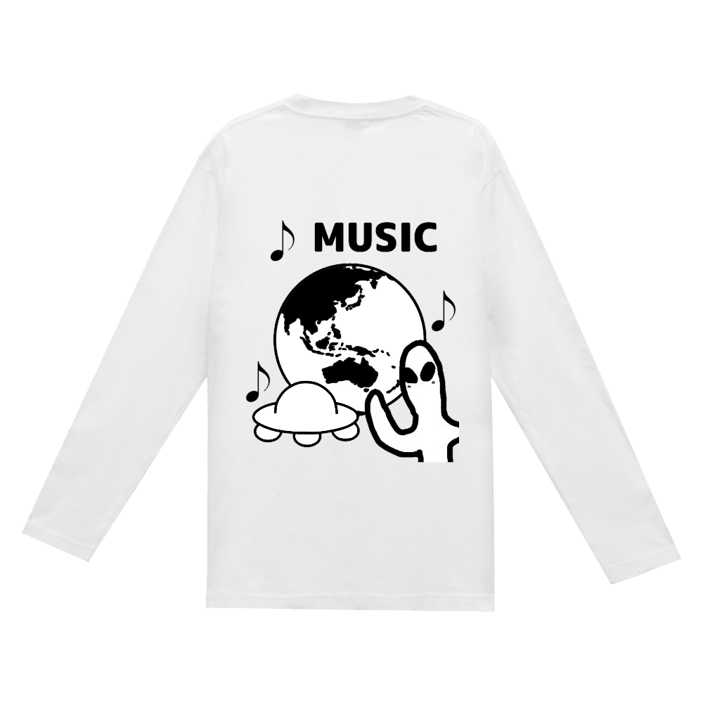 宇宙人とクラゲもどきMUSIC長袖Tシャツ宇宙人と地球(無地)