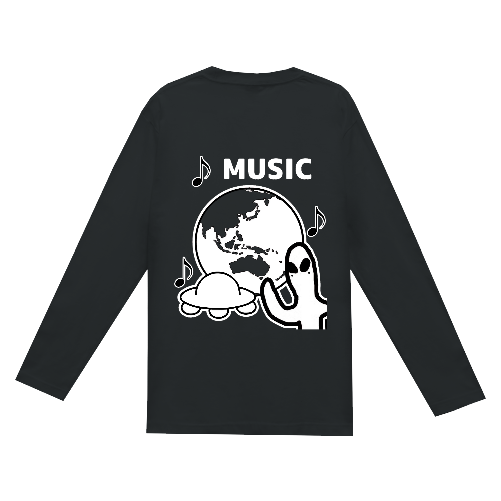 宇宙人とクラゲもどきMUSIC長袖Tシャツ宇宙人と地球(白枠カラー10種)