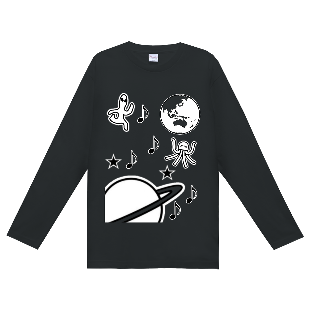 宇宙人とクラゲもどきMUSIC長袖Tシャツ宇宙人と地球(白枠カラー10種)