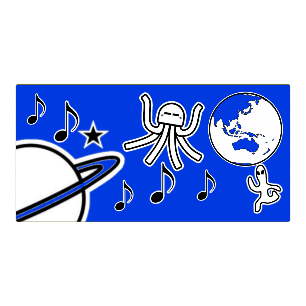 宇宙人とクラゲもどきバスタオル・母星と地球(ブルー)